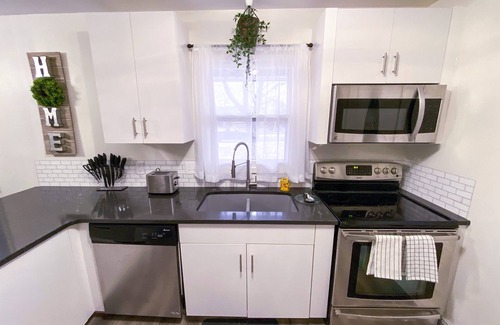 This beautiful 3 bedroom, 1.5 bathroom home has been fully remodeled with guest comfort in mind. Located on a quiet end-of-the-road street and corner lot. A grocery store, Starbucks, and other eateries are a short walk away. To the south, you’ll experience open space, beautiful sunsets and enjoy the fresh Kansas air. Large bay windows light up the living room where you’ll also find a workstation to stay productive and enjoy the scenery.