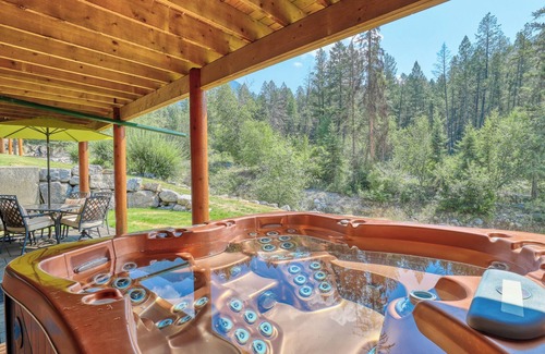 Downstairs, the lower level provides a cozy space to watch a movie in the living area. There are 2 bedrooms on this level - one with a queen, and the other with a twin bed and a bunk bed (twin over double). A full bathroom is also on the floor. The walk-out covered deck features the private hot tub - warm up after an adventurous dip in the creek perhaps!
