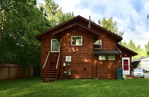 Welcome to your Alaskan Adventure headquarters! Take a break from the hustle and bustle by staying at our newly renovated 2 bedroom, 1 bathroom lodge with an outdoor fire pit perfect to curl up with loved ones. Centrally located a quick 15 mins from the airport, 8 min to the U-med district, a few mins from shopping, and highway. Your private haven will include a fully stocked kitchen, FAST wifi, Apple TV on a 60" screen, washer & dryer, board games and more!