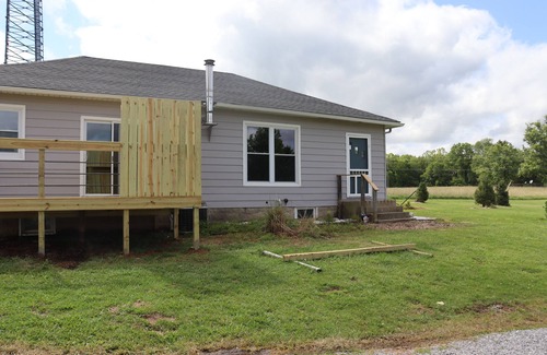The old farmhouse is a one-of-a-kind place to relax, surrounded by farms and fields. Just recently had a total makeover. Leather furniture, wood floors, barn wood, and metal ceilings. The fireplace surround is a unique stone, personally gathered from a local quarry. Artwork and antiques add to the warm and inviting atmosphere. The kitchen is fully furnished with cookware and has all modern appliances and a gas grill outback. Relax and enjoy a quiet dinner inside or dine and have a drink under the star on the new private deck. Or if you prefer, dine out at one of the many great unique local restaurants. Take advantage of the newly remodeled bathroom with shower/bath, premium towels, and extra toiletries if you forget something.