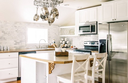 The Barn sleeps 4 in two bedrooms (1 king bed, 1 queen bed) and is prepared with everything you need including a fully-equipped kitchen with stainless-steel appliances. After a day of hiking and adventure clean up with a full-sized washer and dryer, plush linens, and an over-sized rain shower head. Settle in with a HD flat-screen TV or stream a movie while sitting next to the cozy fireplace. BBQ on the deck or just sit back with a glass of wine and soak in the alpine glow.