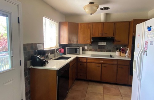 Full house on a quiet cul-de-sac. 3 bed, 2 bath, split level, 1500+ sqft house, garage, fenced in backyard, new deck, and grill. Dog friendly, no cats.. Easy self check-in with door keycode.