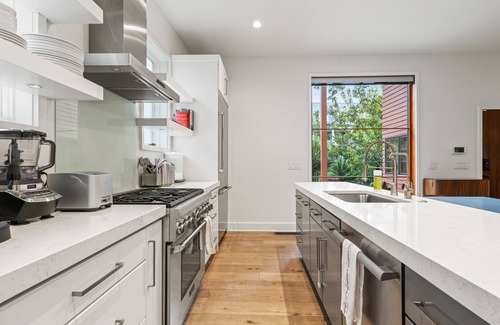 - Upstairs Primary Bedroom: King & 1 Crib (remote control for electronic shades lives on the shelves to the left of the King Bed - please be sure to leave on shelf after each use and prior to departure)