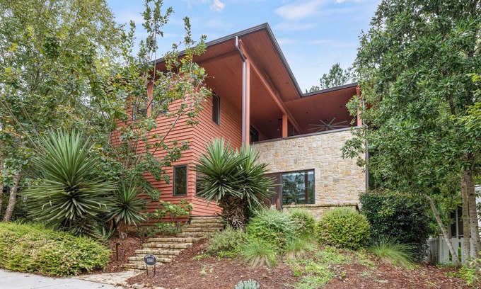 This Frank Lloyd Wright inspired Red Gumball cottage is located in a desirable hamlet within the Serenbe community. It is designed to help you blend with the natural environment, with 4 decks and direct access to the woods and lake in the back of the house. It is toddler friendly with safety features and gates installed at all stairs. Comes with a golf cart for you to experience the true Serenbe resident experience.