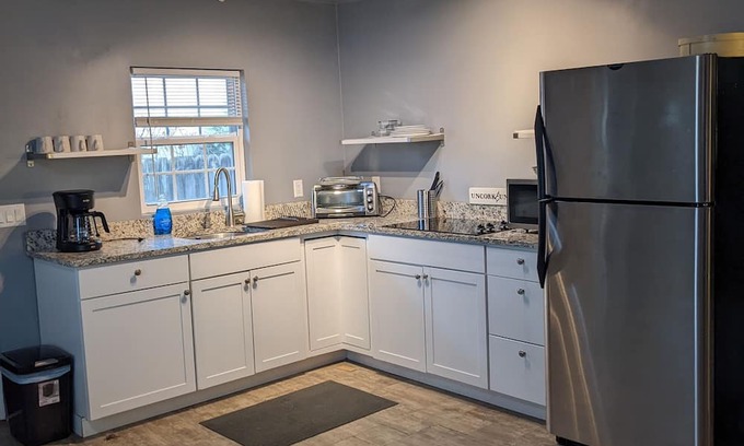 The Kitchenette includes a cook-top stove, microwave oven, toaster oven, coffee maker, and a full-sized refrigerator.