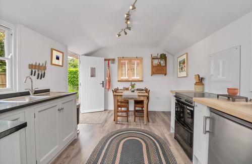 The Red Shed is a unique single storey property, siting within its own private garden. You enter the property through the well appointed, triple aspect kitchen breakfast room which provides seating for 4 people at the antique pine table. The kitchen is well equipped, with fresh & instant coffee, V60 coffee filter, a microwave oven, Fan oven and a great selection of cooking utensils and kitchenware. Fresh eggs (when laying) from the my pet hens, homemade biscuits, milk, sparkling water, a vase of flowers from the garden in spring and summer, plus a decanter of whisky for your nightcap. If you’re staying for a week I’ll provide bread from our local artisan bakery, ‘The Friendly Loaf’.