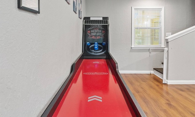 At the front of the house and you’ll find a dedicated game space — complete with a working Skee-Ball machine! Perfect for kids and adults alike, this surprise feature turns a relaxing stay into a fun, memorable one.
