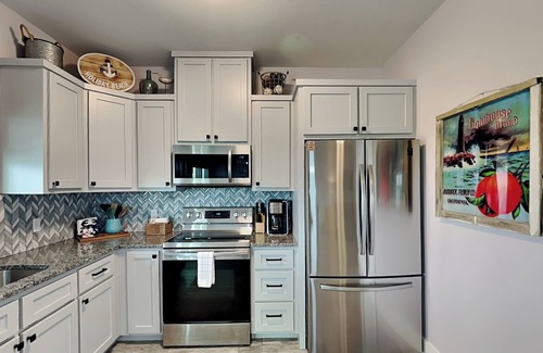 Retreat to the comfort of your king or twin beds in the bedrooms, each offering its own full bathroom for added convenience. With a washer/dryer on-site and a pier for fishing right at your doorstep, The Reel Getaway promises a truly unforgettable retreat. Book now and reel in the memories!