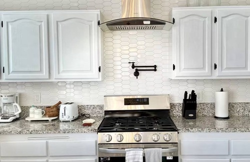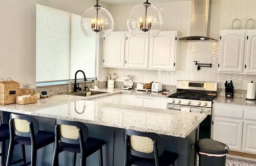 The Refuge of dreams is a stylish and family-friendly 3-bedroom, 3-bathroom home. The master suite features a king-size bed with an attached private bathroom. The second bedroom includes a queen-size bed, and the third has a full-size bed, perfect for kids, friends, or extra guests. Each room is thoughtfully designed to balance comfort and style, ensuring a relaxing stay.