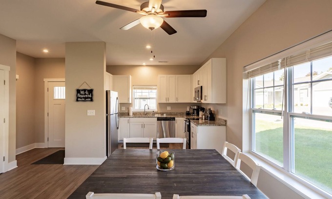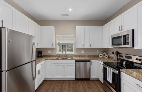While you're here, you can enjoy all the comforts of home and more, including a refrigerator and an oven, as well as a stovetop and a dishwasher. Other amenities include a memory foam bed, a freezer, towels, and an ice maker.