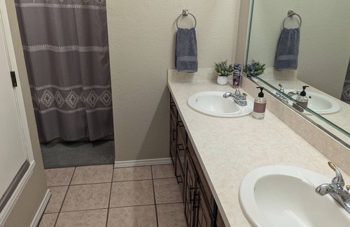 Located in Hobbs, this lovely Smoke-free, Pet-free, house is a dream. Large living room w/ smart TV, & 4 bedrooms including 1 king room, 2 queen, and 3 twin beds, guests will have plenty of space. The Pool table, Massage table and Massage gun, Family games, etc... provide fun and relaxation for all ages. Plenty of parking space, outdoor grill, enclosed backyard, patio dining, what more could be needed?? All of this located centrally in Hobbs, just minutes away from numerous restaurants and shopping.