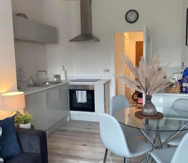 The Retreats 2 Kenfig Hill Pet Friendly 2 Bedroom Flat with King Size bed twin beds and sofa bed sleeps up to 5 people offers accommodations in Kenfig Hill, 27 miles from Cardiff University and 27 miles from Cardiff Castle. This apartment offers accommodations with a patio. Free Wifi is available throughout the property and Grand Theater is 16 miles away. This apartment includes 2 bedrooms, a living room and a flat-screen TV, an equipped kitchen with a dining area, and 1 bathroom with a shower and a washing machine. Towels and bed linen are offered in the apartment. The property has an outdoor dining area. Guests can relax in the garden at the property. Principality Stadium is 27 miles from the apartment, while St David's Hall is 27 miles from the property. Cardiff Airport is 21 miles away.