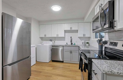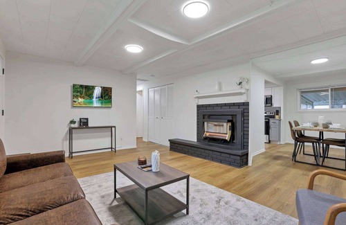 Enter into a spacious living room with electric fireplace. The newly renovated kitchen is fully stocked and ready for you to make a delicious meal. The dining room has seating for four and extra chairs are available. Three bedrooms with queens and quality mattresses will allow you to sleep well. The covered and screened porch has comfortable seating to enjoy the weather. The is a one car garage and driveway for parking plus free street parking as well.
