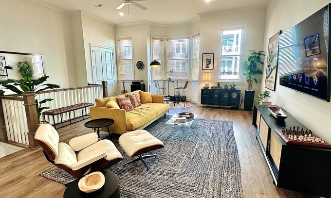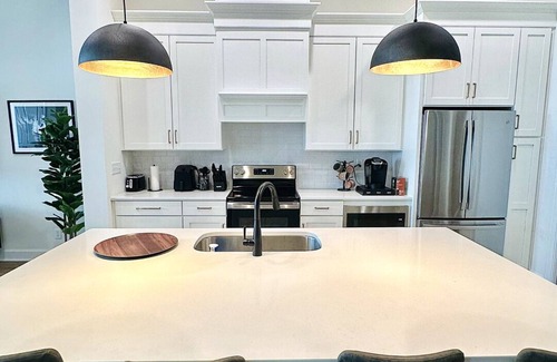 The Rickhouse is a stylish space in Prospect, Kentucky, about 20 minutes from downtown Louisville. This 2-bedroom, 2.5 bathroom apartment is nestled in the heart of Norton Commons, a vibrant community known for its urburban living and picturesque scenery. The space is expertly-furnished with a King and Queen bed and a couple of high-quality roll outs for extra guests.
