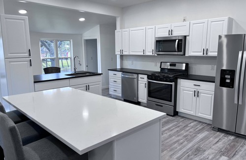 Newly constructed home in the heart of Tahlequah, 3 bedroom suites with private bathrooms. Fully stocked kitchen with quartz and granite countertops. Luxury mattresses and furniture. Just bring your toothbrush!