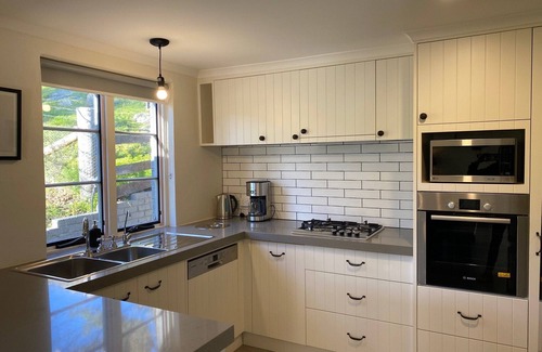 The cottage boasts 2 beautiful bedrooms each with full river views. Each room has a queen bed and a single. Open the louvre windows to bring the sound of the river in. Or the cool breeze at night. Relax in the open plan living area, prepare your meals in the stylishly appointed kitchen. Enjoy a coffee from the fully automated coffee machine.