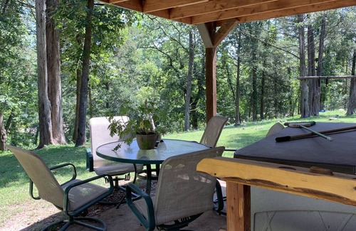What’s new: outdoor shower and tv and children’s swing set. From camping to glamping, The River's Edge B & B LLC is sitting on the edge of the scenic Illinois River, where wildlife, rafting, kayaking, hiking and fishing abound. Watch the sun rise over the mountain or tour the historic Cherokee stomping grounds. There's something for everyone! This full-house includes 5 bedrooms and sleeps 15, is family-oriented and is in a residential neighborhood so if you want to escape the noise, this is your place! Please be aware that the house sets on an unfenced bluff, therefore not suitable for small children. There are deer, birds, chipmunks, waterfowl, black bears, mountain lions, coyotes. There could also be less desirable wildlife/insects such as spiders, ticks and snakes.
