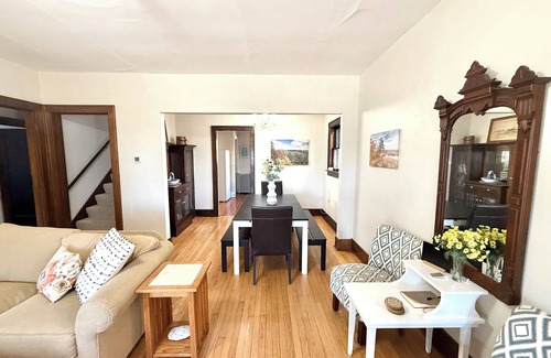 This early 1900's updated home has two bedrooms on main floor and four bedrooms upstairs. Both floors have bathrooms with shower, tub on main level.