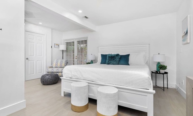Welcome to our charming one-bedroom unit near downtown Fort Lauderdale! Enjoy private patio areas and access to a shared dockside sitting area on the New River, perfect for watching mega yachts sail by. The unit features a cozy living room, full kitchen, work space, and bathroom. Just a short walk to great food, a marketplace, and a beautiful park. Book your stay for a perfect blend of relaxation and convenience!