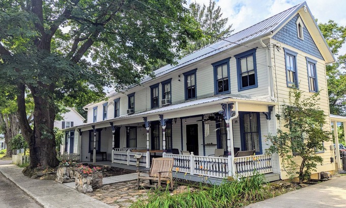 This is your chance to stay at the site of the Historic Riverside Hotel and Saloon in Friendsville, MD. The original house likely dates from the 1870s and retains significant historical charm combined with modern amenities! We pay homage to our hotel origins with 6 tastefully appointed bedrooms, 5 with river views! Enjoy the large kitchen with a convection oven to make meals for the whole family. Dine on our beautiful covered front porch overlooking the Youghiogheny River. Relax and roast marshmallows over the campfire in the back yard! Need to work? Bring your laptop because the Wi-Fi is great - and you can work on the porch, with the river sparkling 20 feet away.