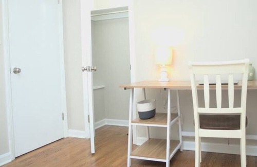 Freshly renovated with fully stocked new kitchen, including new appliances, flat screen TV, Hardwood/low allergen flooring throughout. Crisp linens, home office with high-speed WIFI. Large den with workout area. Washer and dryer on site. Enjoy thepatio overlooking the fenced backyard on a quiet street.
