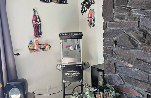 Boasting over 1700 square feet and all the amenities you could ever dream of! From an In home movie theater with authentic popcorn machine. To the out door lounge and hot tub, ALSO equipped with an outdoor theater!