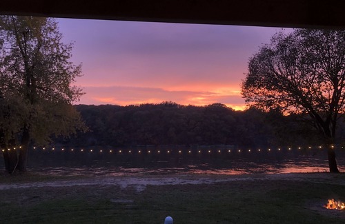 Relax on the deck, grill out, and take in the beautiful views of the Des Moines River. This outdoor space is perfect for playing, unwinding, and enjoying nature! Guests can fish, lounge at the swing gazebo with a fire pit, play outdoor games, or simply watch the sunset over the river.