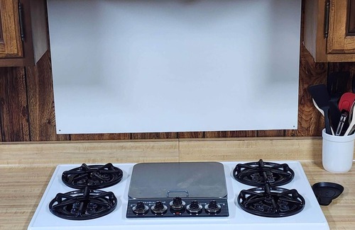 Fully Equipped Kitchen: The modern kitchen is outfitted with all the essentials, including a full-size refrigerator, oven, microwave, and plenty of counter space, making it perfect for preparing meals after a day of hunting or exploring.