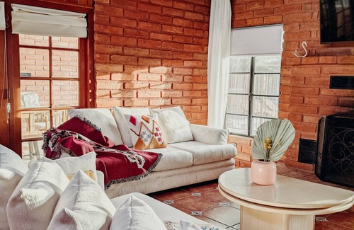 Our custom Brick Adobe is full of charm with details like original wood paneling, soaring ceilings, exposed beams, and many windows for beautiful light. Newly renovated bathrooms, a large open kitchen, and separate dining and living rooms make this perfect for large groups. Cozy organic cotton bedding welcomes you in every bedroom.