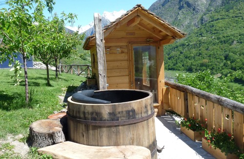 The apartment is perfectly furnished and equipped with all comforts. Guests can enjoy the large garden, the swimming pool and the small wellness area with outdoor sauna and whirlpool (from June to September). They can also relax in the shade of the vine-covered pergola on hot summer afternoons.