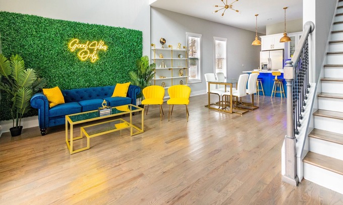 The Royal Luxe features amazing areas to get great content! This beautiful new construction two story home is located blocks from the West Beltline, just minutes away from Atlanta's best attractions! 15 minutes away from the airport, and 7 minutes from Downtown's attractions including World of Coca Cola, Georgia Aquarium, Mercedes Benz Stadium, and Centennial Olympic Park. Each room have a smart tv offering Netflix and Hulu.