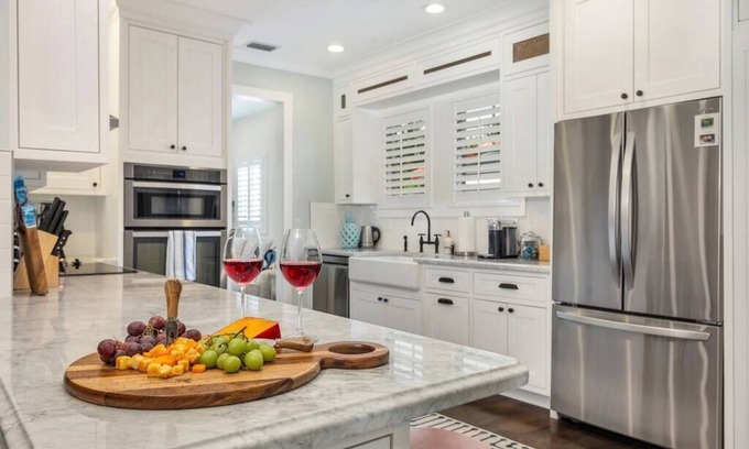 AMMENITIES – Arrive to Starbucks coffee, a phenomenally outfitted kitchen that includes coffee bar, mixology bar, kids plates, cups, etc. Along with the necessities, like Insta-Pot and blender.