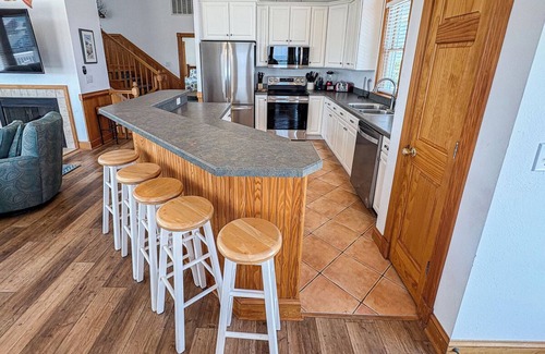 The home features five beautifully appointed bedrooms, including four with private baths, ensuring comfort and privacy for all your guests. Dive into relaxation in the fenced-in private pool or unwind in the hot tub, surrounded by lush landscaping. The open great room boasts an abundance of natural light and serves as the perfect gathering space, while the additional den and game room provide extra areas for socializing. With amenities such as wireless internet access, multiple decks, and a fully equipped kitchen, you'll find everything you need for an unforgettable wedding experience.