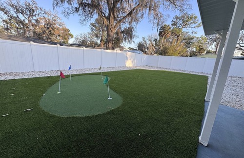 The Salty Lime Cottage includes 2 cozy bedrooms with queen beds, 1 bathroom with a bathtub/shower combo, and a queen sofa bed in the living room. The property features a large island for entertaining, a fenced-in backyard (pet-friendly!) with a putting green, and ample space for a boat and trailer. We hope you make unforgettable memories here—please feel free to message us with any questions!