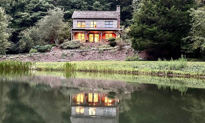 The Sanctuary at Fiddlehead | 4BR Farmhouse + Pond & Trails is located in Zirconia. The Sanctuary at Fiddlehead | 4BR Farmhouse + Pond & Trails provides accommodation, featuring Guest Services, Child Friendly, Internet, among other amenities. This House features Guest Services, Child Friendly, Internet, to make your stay a comfortable one.