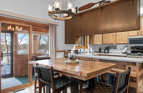 Looking for a place to unwind & connect with friends and family no matter the time of year? Look no further! This 4 bedroom, 3 bathroom cabin boasts beautiful views of Prairie Lake while being in close proximity to downtown Chetek, Rice Lake, or Cameron! With a lift down to the lake, you don't have to worry about steps getting in your way of relaxing on the lake. The Chetek Chain of Lakes offers 60 miles of shore line making it a boat lovers dream. We also offer a shore station to store your fishing or speed boat, so don't forget to pack those too! There are multiple places throughout town to rent watercraft if bringing them isn't an option. Enjoy a cup of coffee or an afternoon brew on the new deck or in the 3 season porch. All new furniture & decor throughout the home. Excellent ATV riding & snowmobiling nearby. If you're bringing the kiddos, we've got games for them to enjoy while the adults have a beverage at our basement bar.