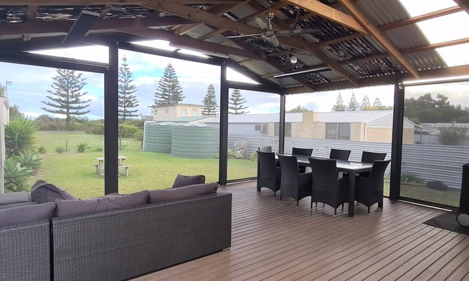 All bedrooms have cupboard space. A fully self-contained kitchen and spacious lounge easy to relax while watching television or playing board games with the family in the comfort of the air conditioner. Come out and pull up a seat on the large decking area to take in the view and smell of the sweet sea air while cooking the BBQ.