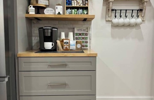 During your stay, enjoy access to shared amenities, including a fully stocked kitchen with a refrigerator, oven, microwave, air fryer, toaster, blender, and griddle—perfect for preparing meals or snacks. A shared coffee and tea bar is also available to start your mornings right. Relax in the inviting sitting area or gather outside around the fire pit, where you can roast marshmallows, share stories, or take in the serene mountain views.