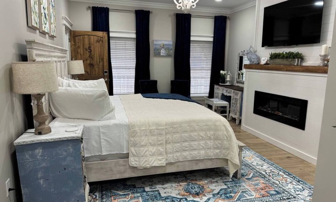 This beautifully designed 2-bedroom suite features a king-size bed in one room and a full-size bed in the other, offering space for families, friends, or couples. Enjoy the warmth of a remote-controlled fireplace, elegant decor, and thoughtful touches throughout.