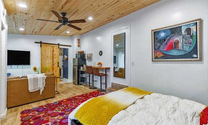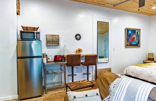 Sapphire Suite boasts a stylish space complete with full renovations on the entire space and entrance. The space has been designed specifically for your comfort and tranquility. The space is designed for the perfect getaway for one to two guests to come relax in one of the nicest cities in all of the U.S.