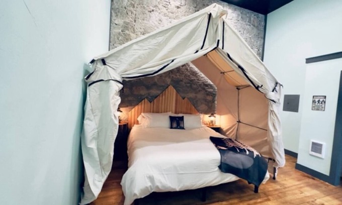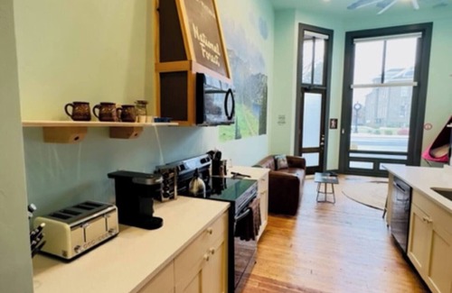 Immerse yourself in Sawtooth, a one-of-a-kind luxury condo in downtown Enterprise, part of the historic Litch Hotel. Embrace the outdoors with our camping-inspired design, featuring log shelves and a hanging chair. Enjoy a fully-equipped kitchen with quartz countertops, a cozy king bed, a spacious themed bathroom, high-speed WiFi, and pet-friendly amenities. Explore local attractions just steps away, and experience the beauty of Wallowa County with easy access to outdoor adventures.