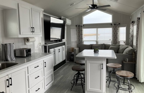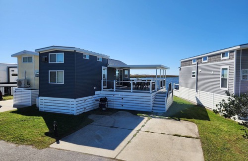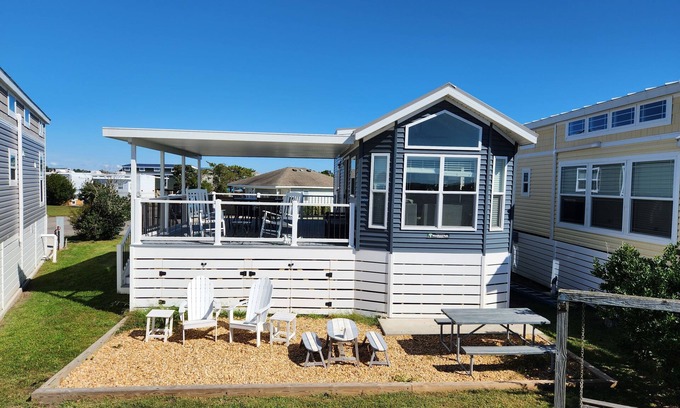 The resort we are located in offers a community pool, playgrounds, and open spaces for children, and adults alike, to run around and have a good time. We are conveniently located directly across from a playground, volleyball court, bathhouse and public laundry room. Enjoy a nice open air dinner on the spacious deck and swing the night away on the backyard swing as the sun sets on the bay.