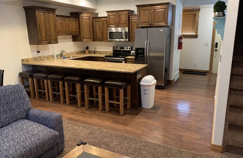 This condo features a fully stocked kitchen, a cozy living room with seating for up to 12 guests, and a lovely deck equipped with a propane grill and breathtaking views of Bear Lake. The main level is ideal for entertaining, complete with a fireplace for added warmth and ambiance. The second floor accommodates two spacious bedrooms, including a master suite with a king-sized bed, ensuring restful nights for you and your guests. Additional amenities such as laundry facilities and ample parking make your stay convenient and hassle-free, allowing you to focus on creating unforgettable memories.