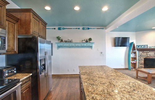 - Modern Amenities: Fully stocked kitchen, large wall-mounted flat-screen TV, and cozy fireplace create a warm and inviting atmosphere for your family and friends.