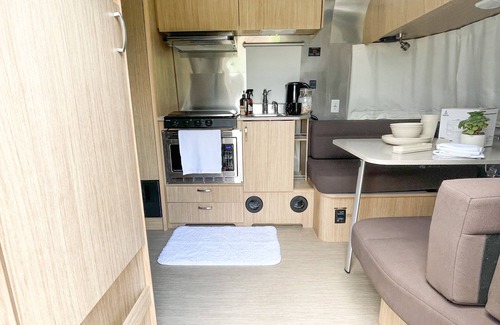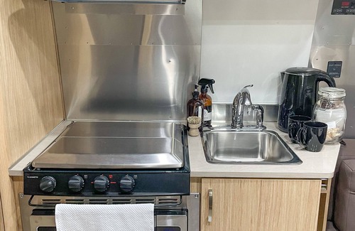 Modern, luxury Airstream designed to maximize your relaxation + self-care in nature. It's the perfect woodsy getaway on 3+ acres for those looking to treat themselves to a serene and secluded glamping experience.