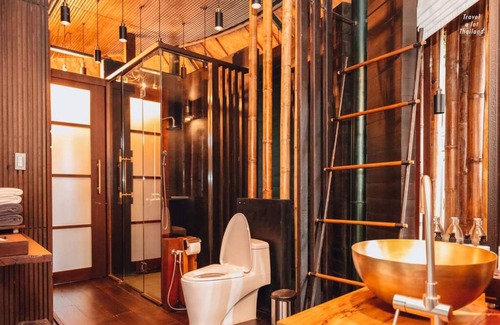 The Sense Resort Kanchanaburi offers 20 air-conditioned accommodations with minibars and safes. Rooms open to balconies. Beds feature Egyptian cotton sheets and premium bedding. 43-inch Smart televisions come with satellite channels. Bathrooms include separate bathtubs and showers with rainfall showerheads, slippers, hair dryers, and toothbrushes and toothpaste.