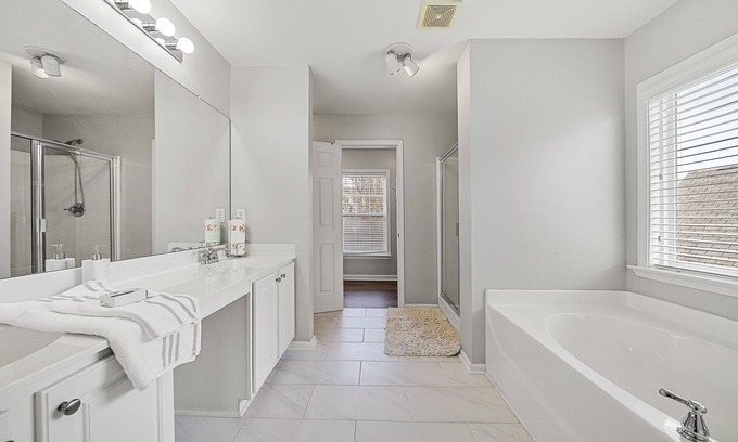 This cove is the perfect space to occupy while away from home for a peaceful getaway. With only 15 minutes from the Hartsfield-Jackson Int'l airport, and easy access to major highways, and downtown Atlanta, you are sure to have access to tons of restaurants and night life. This modern designed home can easily sleep 10 guests, with large space to host intimate gatherings. Give it 1% of your trust and this cove is sure to earn the remaining 99%, while exceeding your expectations.