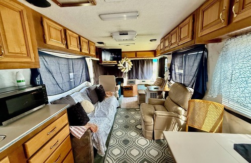 Located in Aransas Pass, enjoy what this 1-bedroom recreational vehicle has to offer. With amenities like WiFi, heating, AC, and coin laundry, guests can relax in the nice living room with a comfy futon. Experience a tremendous stay in this perfect getaway on wheels. We look forward to hosting you at our place.