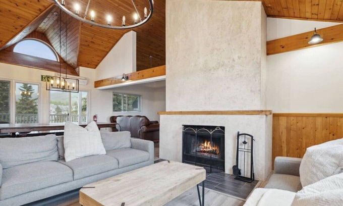 Guests can unwind on all floors of this chalet in one of the three living areas. On the top floor, you’ll find the primary living space complete with a smart TV, two sitting areas, and large windows offering views of Blue. The wood burning fireplace allows you to get cozy after a day of adventure! *Firewood not provided.