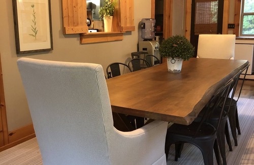 There is a ping-pong table, corn hole boards, mini air-hockey table, old time record player, TV with video games and a DVD player with movies in the garage. Great spot for kids or to flip open the garage doors on a nice day and enjoy time with family and friends. You will also find an old-timey, hand crank, ice cream maker for your use.